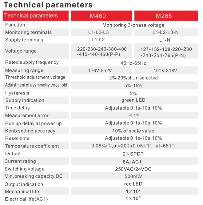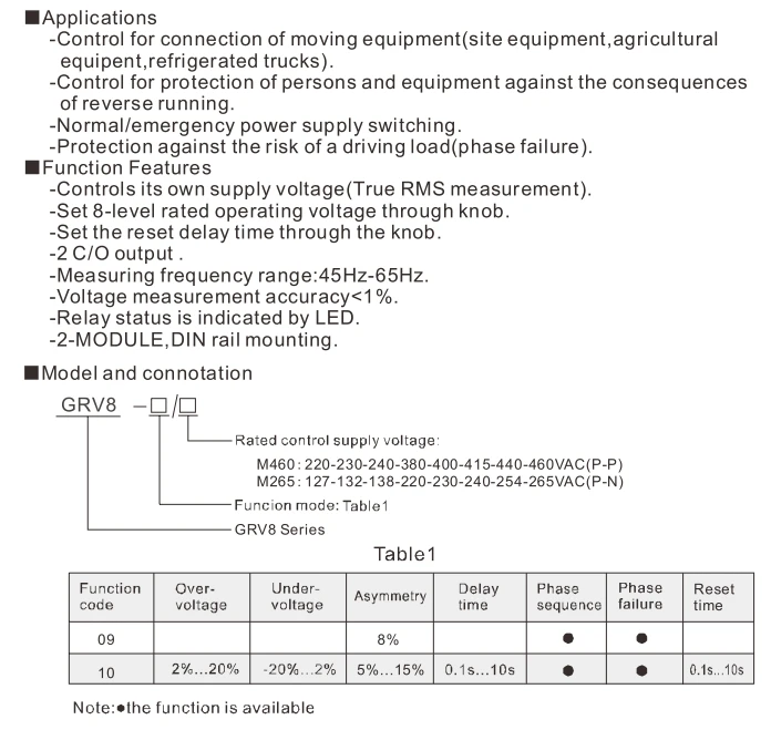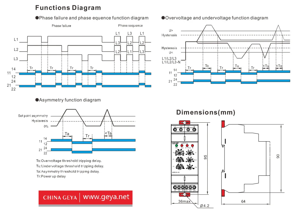 Function: Over UnderVoltage,Asymmetry, Phase Sequence & Phase Failure Protection